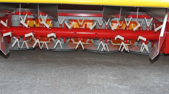 Hydrauliczne odciążenie. Wskaźnik może być łatwo ustawiany przed lub w trakcie koszenia. Podczas koszenia, wskaźnik bezpieczeństwa jest widziany na manometrze.