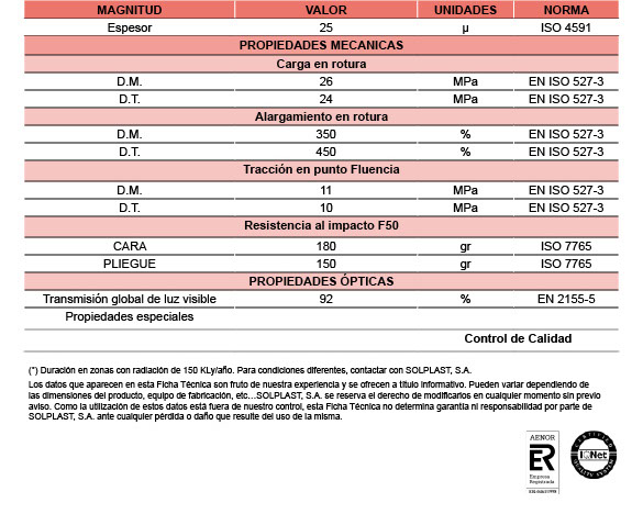 • Efekt anty skraplający, aby zapobiec kondensacji kropli wody na powierzchni folii, zwiększając promieniowanie, które dociera do gleby.