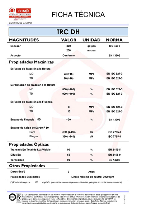 Folia ta został specjalnie zaprojektowana, aby okryć tunele i szklarnie, zapewniając wysoką odporność na degradację przez chemikalia lub promieniowanie słoneczne, ze względu na swój specjalny pakiet dodatków U.V.