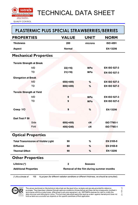 PLASTERMIC PLUS for Strawberries and Raspberries has the ability to stop this heat loss by reducing falling internal temperatures.