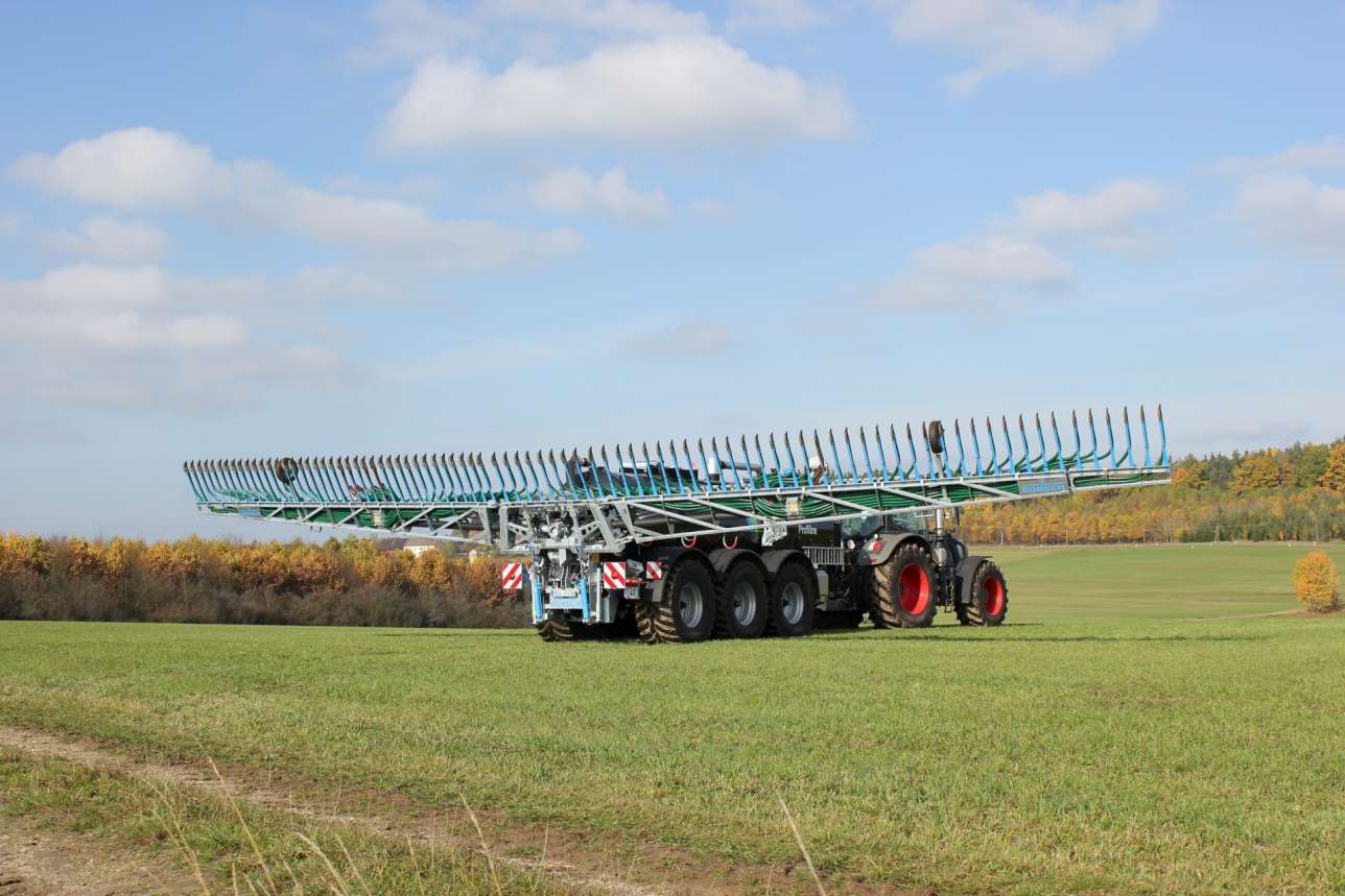 Multi Profi posiada opcjonalne hydrauliczne przedłużenie ramion składanych o długości 3 m z każdej strony (patrz zdjęcie). Opcja składanego ramienia nie tylko zmniejsza długość transportową, ale w razie potrzeby także szerokość roboczą (z 21m do 15m lub z 24m do 18m).