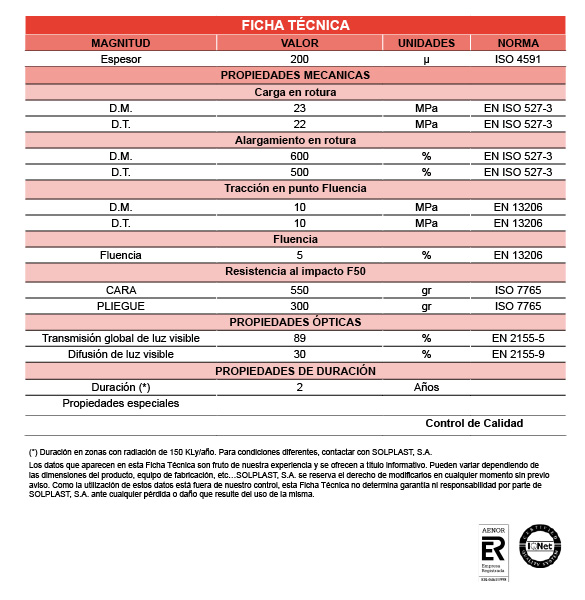 Arkusze nietermiczne, wytwarzane przez współwytłaczanie wielowarstwowe, w kombinacji z LDPE i LLDPE o różnych grubościach. DURASOL WHITE zawiera specjalną kombinację stabilizatorów, które chronią przed promieniowaniem UV; bazując na organicznym związku aminy (HALS), folia jest bardzo odporna na degradację zarówno wywołaną promieniowaniem UV jak i wysoką temperaturą, która zazwyczaj występuje w miejscach, w których tworzywo sztuczne wchodzi w kontakt z metalowymi częściami konstrukcji.