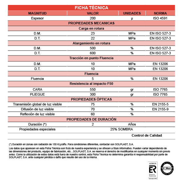 DURASOL SHADOW zawiera specjalną kombinację stabilizatorów, które chronią przed promieniowaniem UV; na organicznym związku aminy (HALS), folia jest bardzo odporna na degradację zarówno wywołaną promieniowaniem UV jak i wysoką temperaturą, która zazwyczaj występuje w miejscach, w których tworzywo sztuczne wchodzi w kontakt z metalowymi częściami konstrukcji.