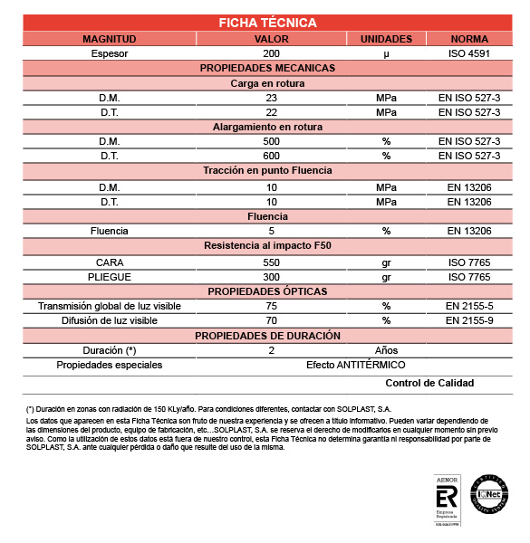Produkt ten został zaprojektowany specjalnie do stosowania w obszarach o bardzo wysokim promieniowaniu, które musi być ograniczone, aby zapobiec zbyt wysokim temperaturom wewnątrz szklarni. Dodatkami przeciw-termicznymi są pigmenty, które odbijają promieniowanie krótkofalowej podczerwieni, co powoduje obniżenie temperatury wewnątrz szklarni.