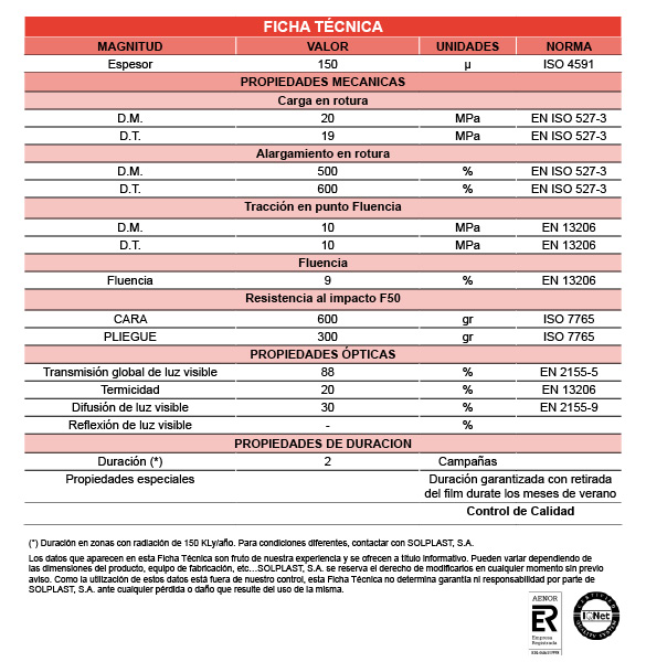 Ponadto, warstwa środkowa zawiera również kombinację dodatków, które stanowią barierę dla promieniowania podczerwonego, co daje dobre właściwości cieplne, które regulują temperaturę w szklarni.