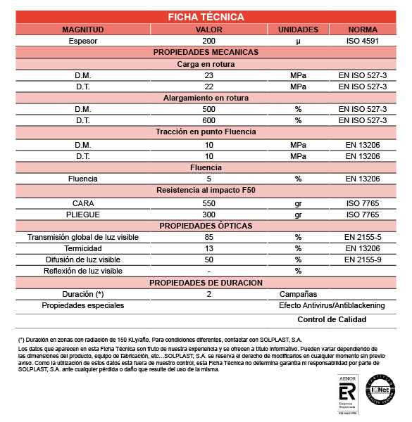 Ekran ten jest utworzony z folii antywirusowej wytwarzanej przez Solplast S.A., w której stosuje się kombinację dodatków fotoselektywnych, zapobiegających dostawania się promieniowania UV-B do wnętrza szklarni, co powoduje, owady są zdezorientowane, jak opisano powyżej. Ważne jest, aby pamiętać, że zablokowanie tego promieniowania może negatywnie wpłynąć na pożyteczne owady w szklarni (takie jak pszczoły i trzmiele wykorzystywanych jako zapylacze), ponieważ staną się one również zdezorientowane. Testy przeprowadzone przez Solplast S.A., we współpracy z Uniwersytetem w Almerii, wskazują, że trzmiele są w stanie dostosować się do tej sytuacji.