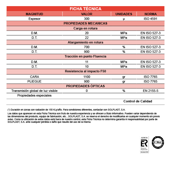 Czarne arkusze produkowane przez współwytłaczanie wielowarstwowe, o grubości od 250µ do 1mm. Kombinacja żywic LDPE i LLDPE, które są używane do produkcji tej folii, nadają jej doskonałą wytrzymałość mechaniczną i czynią ją optymalną do stosowania jako folię uszczelniającą.