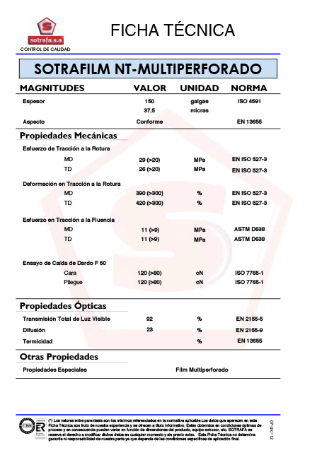 Folia wielowarstwowa współwytłaczana, wykonana z LDPE i kopolimerów EVA, w różnych grubościach i perforacji 10 mm.